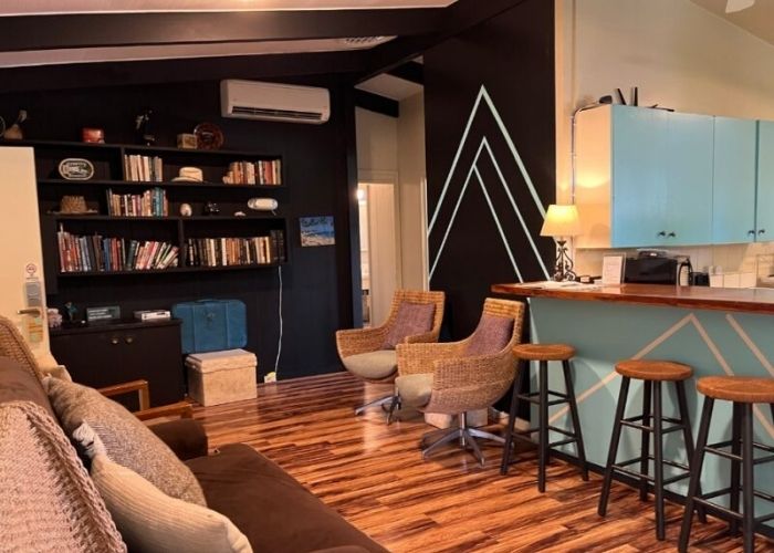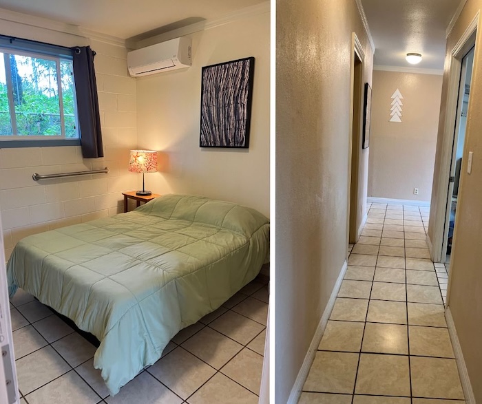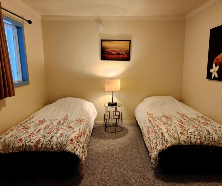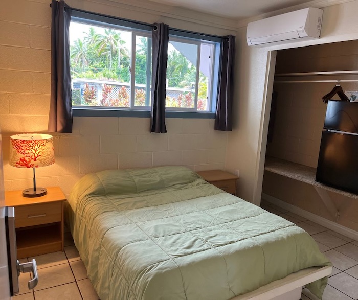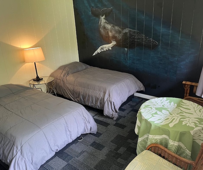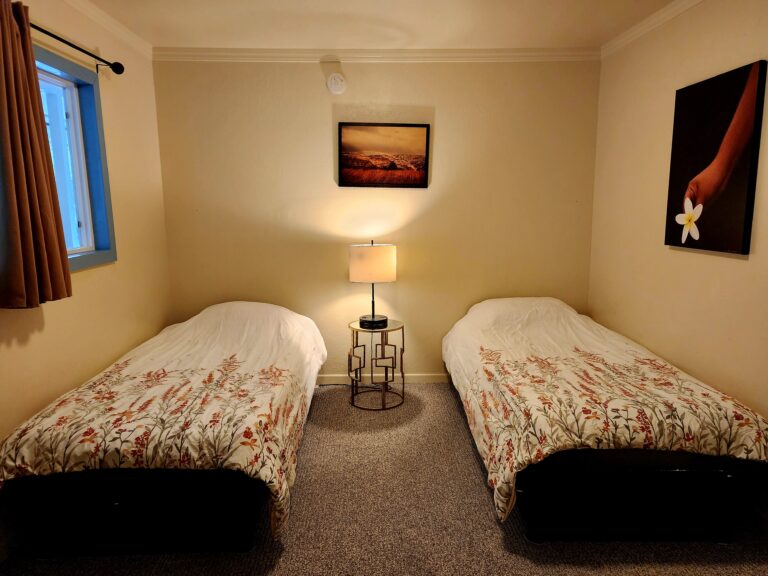 Our spacious and versatile rooms are designed for comfort and convenience, suitable for couples or individual travelers. Each room features a queen-size bed, private bathroom, air conditioning, mini fridge, and coffee maker. Guests also have access to a shared lounge and a fully equipped kitchen with a two-burner stove, toaster, microwave, and dishware.