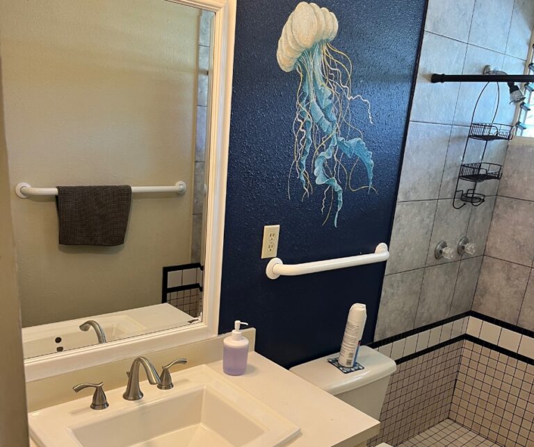 There’s no full-size refrigerator in the kitchens, but every bedroom comes with a mini-fridge to keep your snacks and drinks cool.