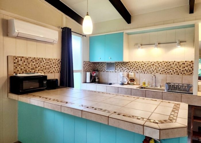 Spacious and versatile rooms for couples, families, and groups. Each bedroom comes with its own private bathroom, air conditioning, mini fridge, and coffee maker. Shared living room, a well-equipped kitchen with a stove, toaster, microwave, and dishware. This is a vibrant tropical lawn and garden setting just across the street from the ocean and 200 yards from a small white coral beach.