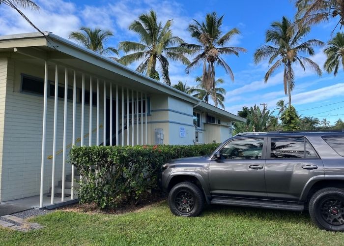 It is the perfect choice for small groups & families of up to 12 traveling together. Our lovely and cozy Keaukaha House comes with 6 bedrooms, 6 bathrooms, a shared living room, and a kitchen. Five of the bedrooms come with a queen-size bed, and the sixth room has two twin-size beds. Each bedroom has its own private bathroom, air conditioning, a mini-fridge, and a coffee maker. This house needs to be booked in advance! Please contact us for any inquiries.
